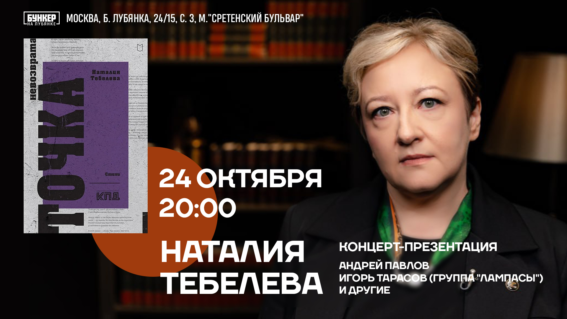 Друзья, приглашаем вас на концерт-презентацию новой книги Наталии Тебелевой "Точка невозврата"!